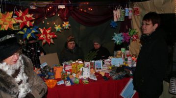 Trotz winterlicher Temperaturen hatten sich heute einige Familien schon früh am Morgen auf den Weg nach Mössingen gemacht. Gemeinsam wollten wir uns als Elterninitiative am dortigen Weihnachtsmarkt beteiligen. In vielen Stunden gemeinsamer Arbeit waren zuvor wunderschöne Taschen, Hausschuhe, Socken, beleuchtete Sterne, Schmuckschachteln und weitere kleine Kunstwerke entstanden, die auf dem Weihnachtsmarkt zu Gunsten von ELHKE e.V. verkauft werden sollten. Als besonderes Highlight an diesem Tag drechselte unser Mitglied Peter Sternischer mit großem Geschick und direkt am Stand Kreisel für die Besucher. Viele schauten staunend zu, wie aus einem Stück rohen Holzes ein kleiner filigraner Kreisel wurde. Vielen Dank an alle Helferinnen und Helfer, die uns bei den Vorbereitungen und der Durchführung dieses Tages unterstützt haben. Der Erlös aus dem Verkauf der Waren wird für eines unserer Projekte in der Klinik verwendet. Herzlichen Dank an alle Beteiligten!
